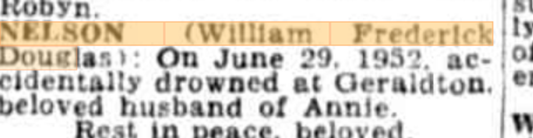 It was after George’s death that police and George’s friends discovered Annie had relocated to live in Perth. She was found and notified. She placed a notice in a Perth newspaper stating George had “accidently drowned in Geraldton, beloved husband of Annie”.