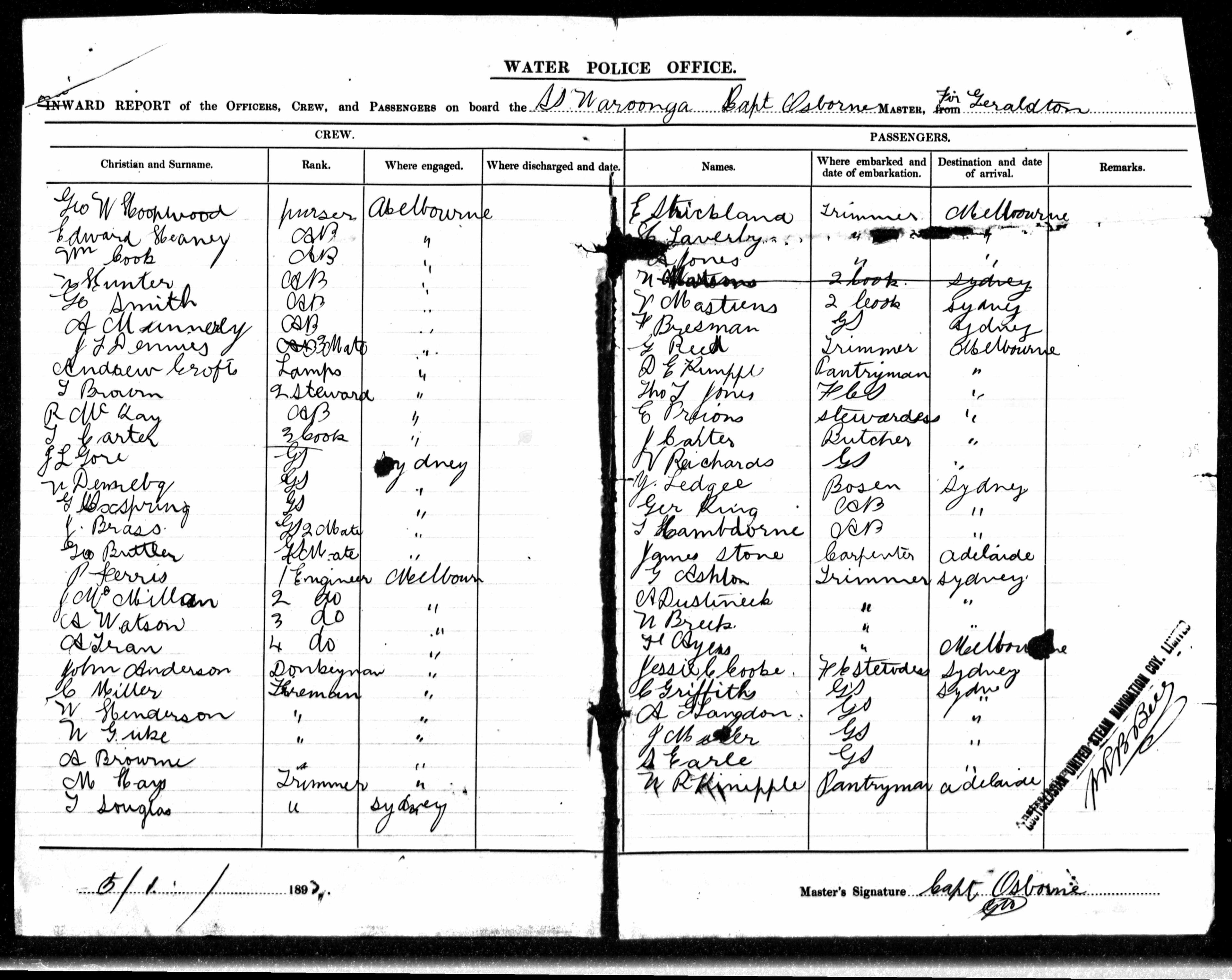Maggie’s cook John Anderson was last seen in Geraldton by her skipper Charlie [Charles] Nystrom and fellow crew member John Nelson on 8 April 1903, intoxicated and very much alive.